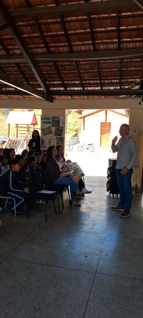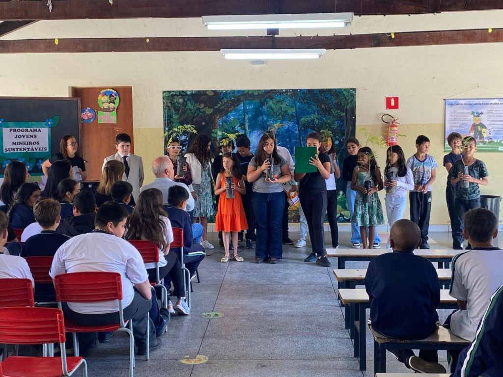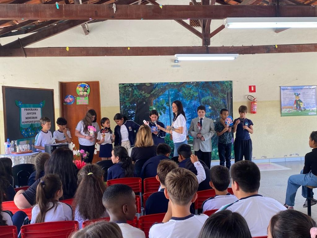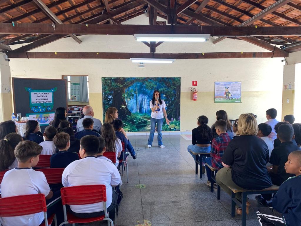 Nesta terça-feira (09/09), a Escola Municipal Arlindo Zaroni recebeu a visita da gestora ambiental Sophia Lins, da Diretoria de Educação Ambiental e Relações Institucionais da SEMAD, como parte das ações do Programa Jovens Mineiros Sustentáveis.