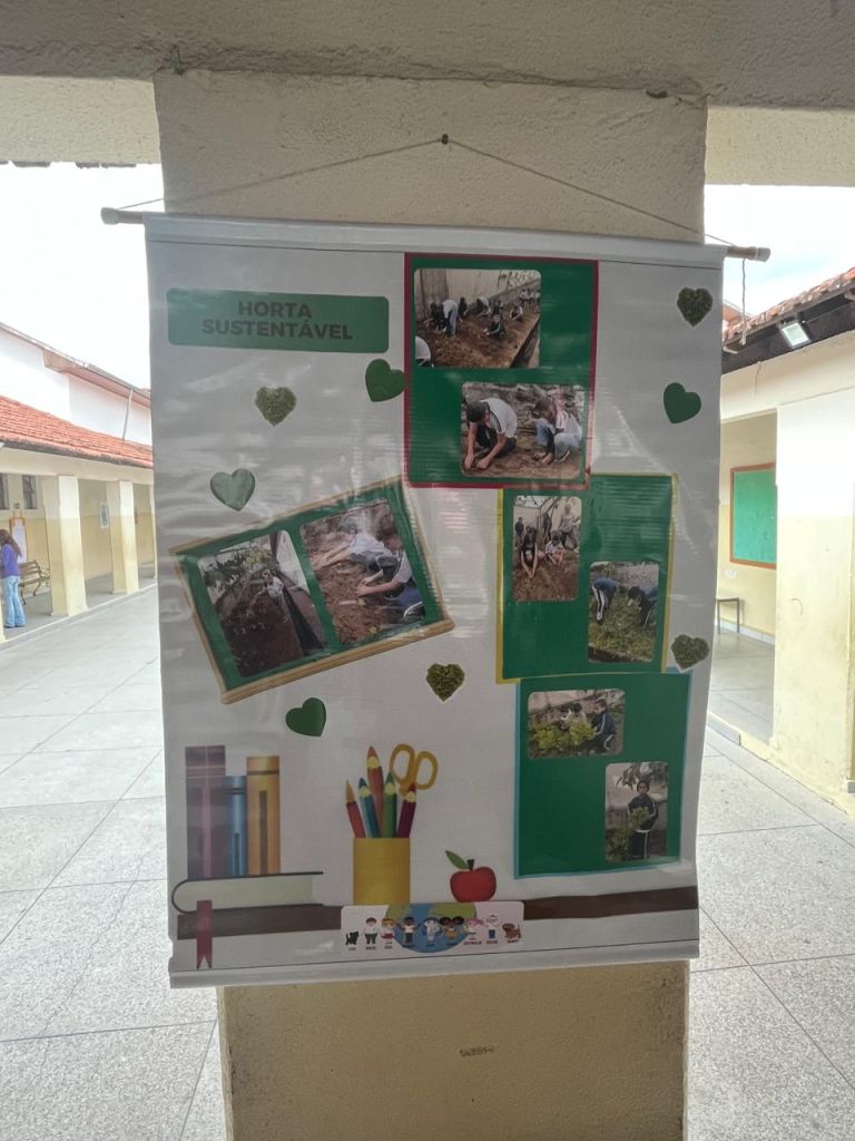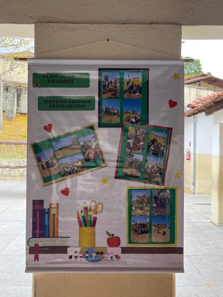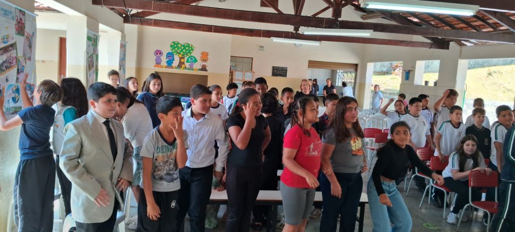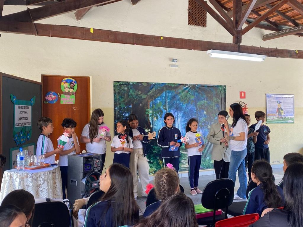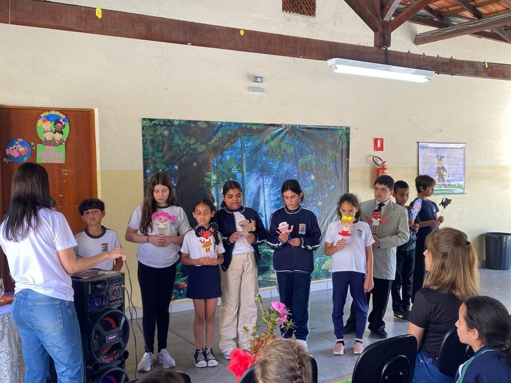 Durante a visita, os alunos do 5º ano apresentaram uma peça de teatro sustentável, abordando de forma criativa temas como preservação da natureza e consumo consciente. A atividade reforçou o aprendizado de maneira artística e colaborativa, incentivando a reflexão e o engajamento das crianças com os valores da sustentabilidade.
